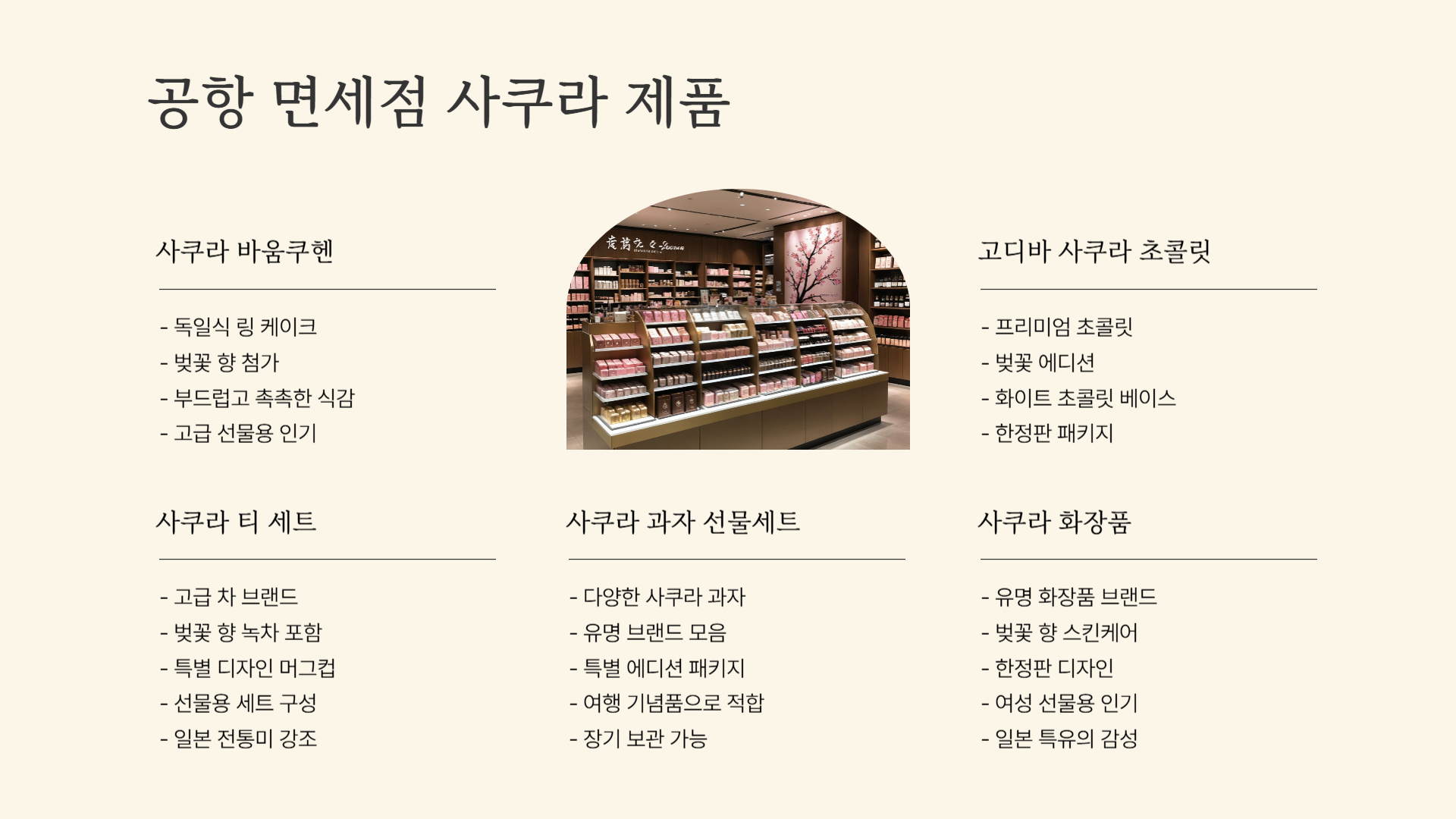 공항 면세점에서는 고급 사쿠라 간식을 합리적인 가격에 구매할 수 있어요. 선물용으로도 딱 좋은 인기 제품들을 추천할게요!